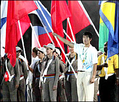 Yao Ming, fameux centre de la NBA et Shanghaien, était le porteur du drapeau pour la délégation chinoise lors de la cérémonie d'ouverture à Athènes.