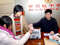 Deux lycéens font un don aux victimes des tsunamis à la société nationale de la Croix rouge de Chine