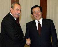 Le vice-président chinois Zeng Qinghong a rencontré jeudi à Beijing le vice-président du gouvernement intérimaire de l'Irak, Rowsch Nuri Shaways, au Grand Palais du Peuple chinois. Lors de sa rencontre, Zeng a exprimé la pronfonde préoccupation de la Chine pour les 8 ressortissants chinois enlevés en Irak, souhaitant que les otages soient libérés au plus t?t. Zeng a déclaré que les peule chinois et irakien jouissaient d'une tradition d'amitié depuis lontemps. Selon lui, le gouvernement chinois attache toujours de l'importance à la sauvegarde des intérêts fondamentaux du peuple irakien dans le traitement du problème irakien. La Chine est prête à conjuguer ses efforts avec l'Irak pour développer les relations sino-irakiennes dans l'avenir. Shaways a indiqué de son c?té que la partie irakienne ne voulait pas voir cette prise d'otages, disant que son pays était en train de faire ses efforts pour réaliser le plus t?t possible la libération des Chinois pris en otage.