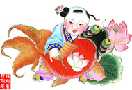 Elles présentent une grande richesse de sujets, un style de lignes régulières et de coloration vive, notamment concernant la figure du personnage, et manifestent un fort accent décoratif. Elles n'ont cessé d'inspirer les gravures sur bois ultérieures, et offrent une grande variété de sujets : portrait de divinité, gardien de la porte, peinture de belle femme, gar?on doré, peinture de bon augure, animaux porte-bonheur, fleurs et oiseaux, paysage, personnage de théatre, mythes et légendes. Mais les sujets favoris restent ? La Bonne chance ?, ? La Bonne Année ?, ? La Chance et la fortune ?, ? Le Bonheur et l'avancement ?, ? La Richesse continuelle ?, ? La Sérénité et la joie ?, afin de créer une atmosphère d'allégresse générale et d'avenir radieux pour la fête. Prenons par exemple l'estampe du Nouvel An : ? Surplus d'année en année ?, qui présente un bébé aux joues rebondies avec une carpe entre les bras et des fleurs de lotus à la main. Comme le poisson se prononce en chinois de la même fa?on que le mot ? surplus ?, la peinture signifie l'abondance : elle est devenue une estampe du Nouvel An classique. Dans l'histoire des gravures sur bois de Chine, les estampes du Nouvel An de Yangliuqing sont aussi connues que celles de Taohuawu, à Suzhou, en Chine du Sud.