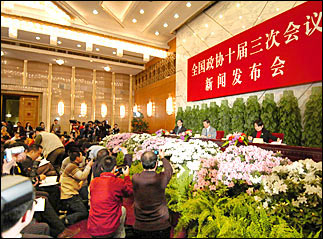 Conférence de presse du Xe Comité national de la CCPPC tenue le 2 mars au Palais de l'Assemblée du peuple