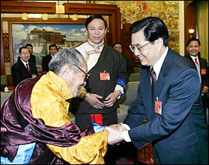Le président chinois Hu Jintao participe à la discussion de la délégation du Tibet sur les rapports