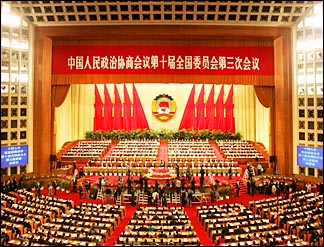 Les 2 110 membres de la CCPPC présents à la réunion de cl?ture ont procédé au vote pour adopter une résolution politique, un document écrit reflétant le consensus auquel ils sont parvenus après de plusieurs rounds de discussions et dans laquelle ils ont saisi cette opportunité pour exprimer leur soutien sans réserve à la promulgation de la Loi anti-sécession visant à empêcher Taiwan de se séparer de la Chine.