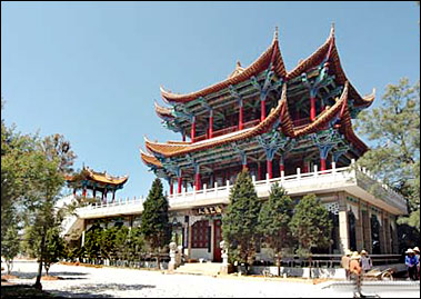 Le pavillon San Bao ''Trois trésors'', dans le parc Zheng He, à Jinning dans la province du Yunnan, ressemble bien au bateau de la flotte de Zheng He.