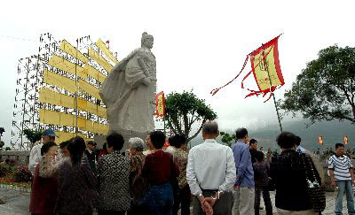 La plus grande statue de Zheng He du monde, érigée sur la place Zheng He de Changle, à l'embouchure du fleuve Minjiang, est haute de 14,04 mètres pour l'ensemble avec une base large de 7 m et haute de 2,8 m. Cela signifie qu'à partir de l'année 1405, Zheng He a fait 7 voyages maritimes durant 28 ans.