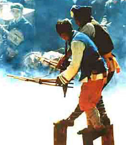 La Danse du tambour de bronze. Instrument d'accompagnement, le tambour de bronze a une face, il est vide et sans fond. C'est une danse représentative de plusieurs ethnies minoritaires vivant dans le sud de la Chine. Celle des Miao est représentée avec un tambour de bronze suspendu au milieu du terrain. Le tambourineur tient dans une main une baguette de bois battre la taille du tambour, et tient dans l'autre main une baguette couverte de peau battre l'unique face du tambour. Les danseurs forment un cercle et piétinent au son rythmique du tambour. Au moment joyeux, ils claquent les paumes et émettent des hai-he-he. Les gestes prennent source de la chasse, du travail agricole, comme faire du cheval, conduire des canards, pêcher du poisson et prendre des crevettes à la main.