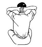 Tourner les roues avec les mains (Les roues gauche et droite) Dans la position assise, garder le corps droit et les jambes tendues; d?placer les mains en haut pour dessiner un arc ? partir des c?tes. R?p?ter plusieurs fois ce mouvement circulaire, puis ce dans le sens contraire plusieurs fois (Fig. 6). Cet exercice est tr?s utile aux muscles extenseurs des lombes et des jambes et ? la r?gulation de la circulation du M?ridien de la Vessie Taiyang du pied, le plus long m?ridien du corps humain. Il convient particuli?rement aux personnes d'?ge moyen et aux personnes ?g?es.