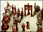 En 1969, un ensemble de figurines peintes repr?sentant des musiciens, des danseurs et des acrobates a ?t? d?couvert dans une tombe des Han de l'Ouest au pied de la colline Wuying ? Jinan, province du Shandong. Cette pr?cieuse collection antique est constitu?e d'un plateau de terre cuite de 67 cm de long et 47,5 cm de large sur lequel se trouvent plus de 20 figurines peintes. Il s'agit d'une "sc?ne des cent jeux" en miniature.(Photo du Jour)