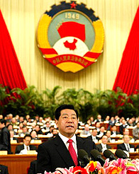Jia Qinglin, nouveau pr?sident de la Xe CCPPC, y a prononc? un discours dans lequel il a dit entre autre : La 1?re session a ?t? couronn?e de pleins succ?s ; c'est une assembl?e de solidarit?, de victoire et de mobilisation.