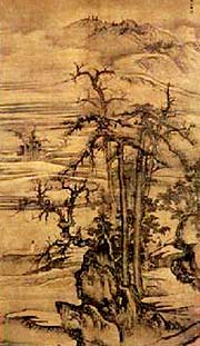 Conformément à la tradition, Wang Wei associe organiquement la peinture à la poésie. Ses vers sont doux, sincères, simples et significatifs tandis que son tableau dispose d'un charme riche mais voilé, d'une inspiration pure, lointaine et élégante. Avec une coloration ferme et des traits énergiques mais ma?trisés, il a créé un espace propre qui lui est propre et exprimé son amour pour la vie.