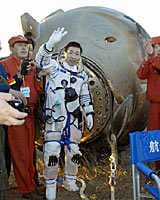 Le vaisseau spatial habité "Shenzhou" V a atterri jeudi à 6H23 (heures de Beijing) dans un terrain d'atterrissage situé dans la Région autonome de Mongolie intérieure, en Chine septentrionale, et le premier astronaute chinois Yang Liwei est sorti du module du vaisseau. Yang a confirmé qu'il se portait bien après un voyage de 21 heures dans l'espace.