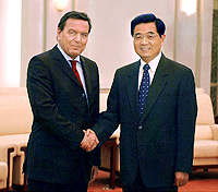Gerhard Schr?der empfangen. Bei dem Gespr?ch lud Hu Jintao die deutsche Wirtschaft zur Teilnahme am chinesischen Aufschwung ein.