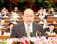 Finanzminister h?lt auf der 2. Plenarsitzung der 1. Tagung des 10. NVK den Bericht seines Ministeriums.