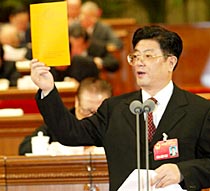Wang Zhaoguo, Exekutivvorsitzender und st?ndiger Vorsitzender des Pr?sidiums der Tagung, f?hrte den Vorsitz der Plenartagung