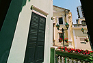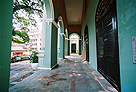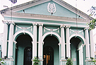 崗頂劇院の建物はもともとペドロ五世劇院(Teatro Dom Pedro V)といわれ、また馬蛟劇院或いは崗頂波樓とも呼ばれ、1860年に澳門在住のポルトガル人が資金を調(diào)達して劇院のメーンの部分を作り、これによってポルトガル國王のペドロ五世を記念することになった。建築物のデザインは新古典主義のギリシャ?ルネッサンス期の風格を採用し、平面はタテ方向の配置を取り入れ、全體の塗料は緑色であり、黒い緑色のドアと窓および赤色の屋根によって引き立て、黃色を主なトーンとする周辺の環(huán)境と調(diào)和がとれており、個性も際立たせている。 |