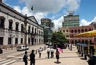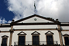 民政総署オフィスビルは1784年に建てられ、1874年と1936年に屋根、壁、ドアと窓がいずれも損壊したため、1876年と1887年にそれぞれ修繕工事が行われた。1938年に改築工事が始まり、1940年に完工し、今日に至ってもその姿はほとんど変わっていない。何回も修繕と改築を経たため、建物の風(fēng)格は多様化してはいるが、當(dāng)時の建築理念と好みを反映している。今日の建物のメーンの壁面はルネッサンス風(fēng)と簡潔な風(fēng)格があり、白色の壁、黒い緑色のドアや窓、花崗巖を積み上げた壁の地面に近い部分で壁面を色分けし、人々に荘重で穏やかな感じを與えるものがある。バロックの特色のある窓格子は2階の窓の上あたりでいくらか具現(xiàn)されている。 |