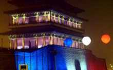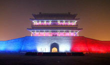フランス文化を紹介するイベント「フランス文化年」の開幕を記念して、500年以上そびえ立つ北京の正陽門(前門)が9日夜、フランス國旗の色である赤?白?青3色のライトに照らされた。正陽門は従來赤い壁に緑の瓦だが、同日のライトアップにより外國の雰囲気に包まれた。胡錦濤國家主席とフランスのシラク大統(tǒng)領は會見後、正陽門での記念撮影を約束した。