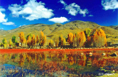 ダオチョン(稲城)は四川省南部の縁に位置する。春夏秋冬、それぞれに獨特の美しさを見せてくれる。なかでも秋の色彩に包み込まれたウチュ(俄初)山が最も秀麗だ?!弗Ε隶濉工膝隶佶氓日Zで「輝く山」のこと。海抜は5140メートル、峻嶺は雲(yún)の虹に端坐する容貌の美しい仙人を彷彿させる。峽谷から登り始めていくと、幾重にもなった灌木の森林が眼に飛び込んでくる。艶やかな紅色、明るく美しい黃色、柔らかく溫かな緑色と、実に色彩豊かで麗しい。訪れた人びとは秋の風景に酔いしれることだろう。