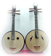 撥弦楽器。漢の武帝の頃に、箏、築などの楽器を參考にして製作したもの。阮は共鳴箱が円形で、さおがまっすぐで、4本の弦、12の柱位があり、柱が高低の異なった4弦の間に立ち、4弦を共用する。このような構(gòu)造を見ると、中國の平均律の使用はその頃から始まったことが分かる。唐代になって阮は13の柱位となり、唐の武后則天の頃、阮咸と改名し、近代においては阮と稱された。一連の改造を過て、現(xiàn)在は24の柱のものとなり、音量が大きくなり、音色も改善された。近年、さらに2層の共鳴箱をもつ中阮も開発された。このような中阮は音色がソフトな特徴を持つと同時(shí)に、音量も大きくなっている。器楽合奏や伴奏で、阮は重要な撥弦楽器の一つである。よく使われているのは大阮と中阮の二種類である。