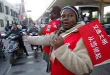上海市大寧路のコミュニティに住む上海大學(xué)の留學(xué)生と同地區(qū)の住民は9日、「外出時(shí)にはマナーを持ち、交通規(guī)則を守ろう」をテーマとした社會(huì)活動(dòng)を?qū)g施し、秩序とマナーのあるスムーズな交通を呼びかけた。(編集NK)