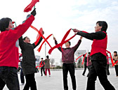 黃河河口の町?東営市の河口區(qū)では12月31日、住民が純樸で朗らかな民間舞踴「秧歌舞」に興じた。人々は街に出て銅鑼や太鼓を叩き、踴りながら2005年の到來を祝った。