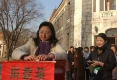 寫真は4日、清華大學(xué)校內(nèi)に設(shè)けられた募金箱に寄付する大學(xué)職員ら。