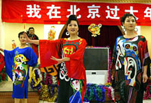 寫真(右):北京市民による公演。衣裝には、伝統(tǒng)蕓能?京劇の「くま取り」がデザインされている。