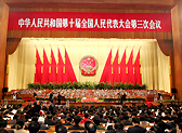第10期全國(guó)人民代表大會(huì)(全人代)第3回會(huì)議が5日午前9時(shí)、北京?人民大會(huì)堂で開(kāi)幕した。全人代常務(wù)委員會(huì)の呉邦國(guó)委員長(zhǎng)が議長(zhǎng)を務(wù)め、國(guó)務(wù)院の溫家寶総理が國(guó)務(wù)院を代表して政府活動(dòng)報(bào)告を行った。