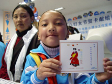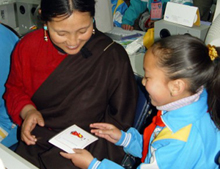 3月8日の國(guó)際労働婦人デーを控え、インテル(中國(guó))が西蔵(チベット)自治區(qū)拉薩(ラサ)市に設(shè)立したコンピューター教室で6日、子供たちがコンピューターを使ってグリーティングカードを作成し、一足早く母親への祝福を送った。