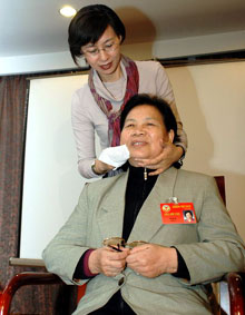 中國人民政治協(xié)商會議第10期全國委員會(全國政協(xié))第3回會議のために北京市に滯在中の女性政協(xié)委員50人が8日、市內(nèi)の華潤飯店に集い、國際労働婦人デーを祝った。會場では「イメージアップ講座」が開催され、張暁梅委員(ファッション誌「中國美容時尚報」社長)がメークのテクニックや言葉遣い、服飾のカラーコーディネート、姿勢や発聲など、イメージアップのポイントを委員らに伝授した。