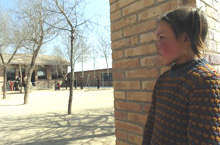 寫真(右):村の小學(xué)校から數(shù)十歩しか離れていない自宅から、校內(nèi)の生徒の一挙一動を見つめる馬亜倩さん(12歳)。馬さんは東郷族の農(nóng)家の長女で、家の仕事を手伝わなくてはならない。しかし、學(xué)校をあきらめたより大きな原因は、家計が苦しく、毎學(xué)期の學(xué)費や諸費用など35元が払えないことだ。馬さんにとって就學(xué)は手の屆かない夢だ。