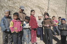 寫真(左):甘粛省臨夏回族自治州東郷族自治県竜泉郷王家灣村の未就學(xué)児童(=10日撮影)