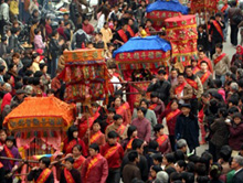 同行事には千年の歴史があり、毎年舊暦2月上旬に開催されている。今年は空前の賑わいとなり、住民のほか観光客ら數(shù)千人が見物に訪れた。