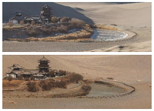 甘粛省敦煌市のオアシス?月牙泉は、周辺の湖沼などの水位が全體として低下傾向にある中、4年近くにわたる河川水の補充により、水位が小幅に上昇し始めている。今春の水位は昨年より6センチほど上昇した。