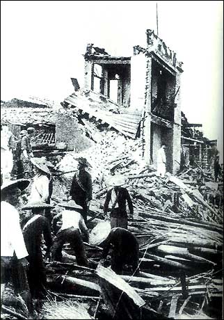 日本軍、河南各地を爆撃。寫真は空襲で焦土と化した塹口鎮(zhèn)