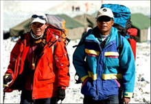 中日女子登山隊(duì)と珠穆朗瑪(チョモランマ)高度測(cè)量隊(duì)A組は11日、海抜5200メートル地點(diǎn)のベースキャンプを離れ、海抜6500メートル地點(diǎn)の前進(jìn)キャンプに向かった。同日、両隊(duì)の隊(duì)員らは休息や整備の後、A、Bの両組に分かれて前進(jìn)キャンプへ出発した。前進(jìn)キャンプで天候の安定を待ち、世界最高峰への登頂に挑む。