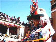 世界最高峰?珠穆朗瑪(チョモランマ)に設(shè)置された登山ベースキャンプ(海抜5200メートル)付近の絨布寺で24日、1年に1度の西蔵(チベット)仏教の伝統(tǒng)舞踴の祭り「跳神節(jié)」が行われた。寺付近に住むチベット族の人々のほか、國內(nèi)?海外の観光客數(shù)千人が參加した。この祭りには、世の中の平和と幸福を祈る意味が込められており、100年余りの歴史がある。