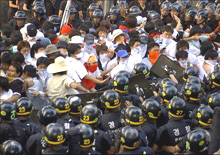 韓國(guó)首都ソウル市の米軍基地付近で29日、韓國(guó)の學(xué)生約2千人が反米?反戦デモを行い、米國(guó)が発動(dòng)したイラク戦爭(zhēng)に抗議し、韓國(guó)からの米軍撤退を求めた。デモ參加者と機(jī)動(dòng)隊(duì)が衝突する場(chǎng)面もあった。