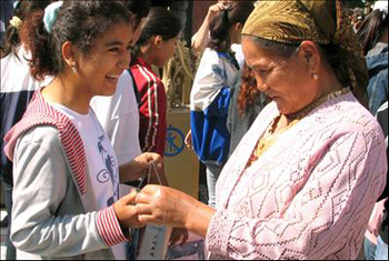 寫真(2):受験會(huì)場(chǎng)を後にするウイグル族の受験生=新疆ウイグル自治區(qū)伊寧市第八中學(xué)で