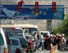西蔵(チベット)自治區(qū)が設(shè)立されて以來、同自治區(qū)拉薩(ラサ)市の景観は日々変化している。中心部道路の総延長は、西蔵自治區(qū)が平和開放された1951年には1キロだったが、現(xiàn)在では241キロに増加した。また、自動車保有臺數(shù)も年々増加している。04年末現(xiàn)在、拉薩市のマイカー所有率は平均23人に1臺となり、全國平均水準(zhǔn)の5倍以上に達(dá)している。市全體の公共バスは770臺以上、タクシーは1200臺前後に抑えられている。