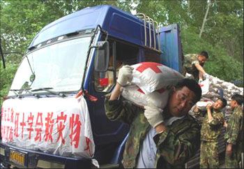 寫真(上):救援物資を運(yùn)ぶ救助隊(duì)員