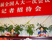 今日3月12日午後3時から、全人代は人民大會堂で記者會見を行い、労働?社會保障部の張左己(左)部長と民政部の楊衍銀副部長が就職と社會保障について記者の質(zhì)問に答える。