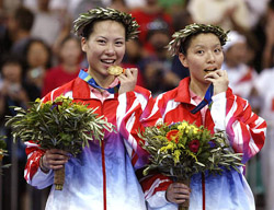 Китайские бадминтонистки Чжан Цзевэнь и Ян Вэй 21 августа завоевали золотую медаль Игр-2004 в парном разряде.