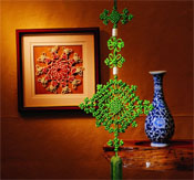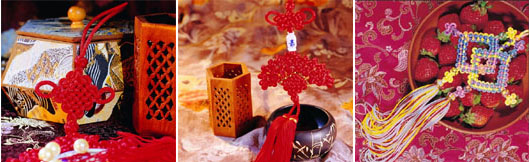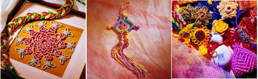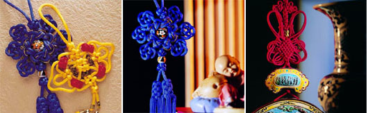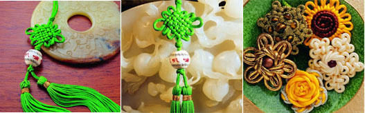 ...Золотые руки мастера сплетают разнообразные узлы из шелковых, хлопковых, пеньковых и синтетических нитей, вплетая в них жемчуг, нефрит, золотые и серебряные украшения.