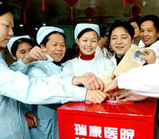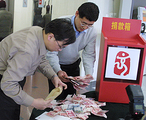 Сотрудники Оргкомитета пекинской Олимпиады делают пожертвования для пострадавших от стихийного бедствия