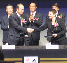 Известный производитель спортивной одежды – компания ?Адидас? и Оргкомитет пекинской Олимпиады 24 января в Пекине подписали соглашение, согласно которому компания становится партнером Оргкомитета пекинской Олимпиады в области спортивной продукции, спонсором китайской спортивной делегации на зимней Олимпиаде 2006 года и летней Олимпиаде 2008 года.