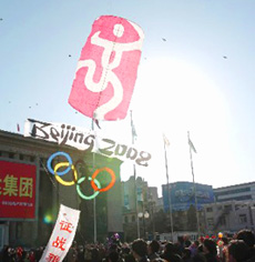 На площади в административном центре провинции Хэбэй г. Шицзячжуане 19 февраля был запущен большой бумажный змей с изображением эмблемы пекинской Олимпиады, слов ?Beijing2008? и пяти колец. Этот бумажный змей скоро взлетит над площадью Тяньаньмэнь и Великой Китайской стеной.