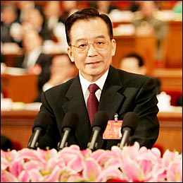 Премьер Госсовета КНР Вэнь Цзябао начал свое выступление с "Докладом о работе правительстве" на только что открывшейся 3-й сессии ВСНП 10-го созыва. В "Докладе" премьер изложит главные задачи и цели социально-экономического развития Китая в текущем году.