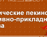 Изделия декоративно-прикладного искусства традиционно делились в Пекине на три категории – предметы быта, декоративные изделия, коллекционные изделия. Со временем происходило обогащение жанров декоративно-прикладного искусства, в результате чего пекинское народное искусство стало настоящей жемчужиной в сокровищнице культурного и художественного наследия Китая. Изделия ?пекинских жанров? декоративно-прикладного искусства имеют три характерные особенности: во-первых, они несут на себе отпечаток ?дворцового? стиля, во-вторых, они несут следы воздействия зарубежной культуры и культуры национальных меньшинств, в-третьих, они имеют ярко выраженную ?народную? специфику.