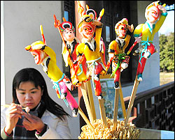 Согласно историческим записям, фигурки из теста лепились уже в эпоху династии Хань (206 г. до н.э. – 220 г. н. э.). В ходе тысячелетнего развития это ремесло стало составной частью народного искусства. Фигурки из теста – важный материал для исторических, археологических, фолклорологических, искусствоведческих исследований. Это ремесло распространено в разных районах нашей страны, но в каждом районе имеется своя специфика. В целом специалисты различают две ?школы? лепки фигур из теста – в бассейне р. Хуанхэ создаются фигурки более резких и выразительных форм и тонов, в бассейне р. Янцзы предпочитают лепить более миниатюрные и изысканные фигурки.